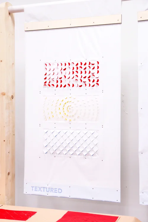 This project had two primary goals. The first: to explore methods of manipulating the form, texture, and actuation of synthetic fabrics in small samples. The second: to take those samples and embed them within larger, standardized panels to create a set of curated, finalized pieces.