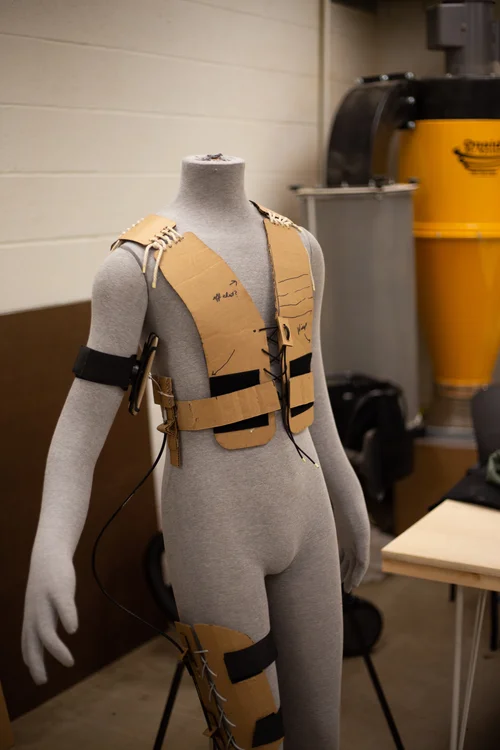 A research project to develop wearable kinematic machines, integrated with fibers, that could extend human gesture or articulation. For this project over 40 samples were generated in various materials and at different fidelities, each with the goal of demonstrating or understanding some physical idea. Shown on this page is a selected few of these samples.